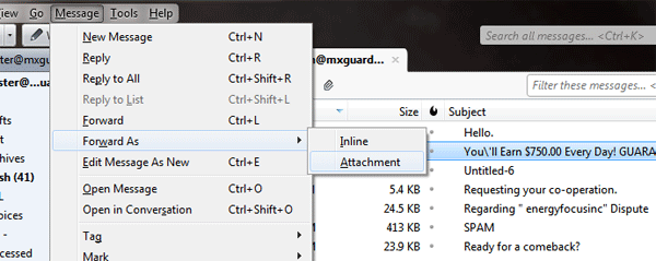 FAQ > My Account Questions > How to submit spam for investigation > Forwarding from Thunderbird